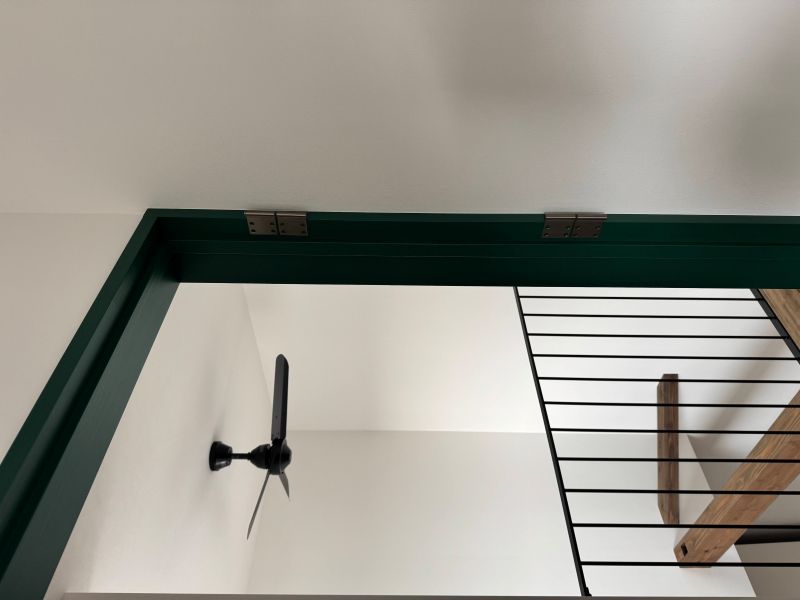 室内でも、2階のドアにブリティッシュグリーンを取り入れるなど、遊び心が散りばめられています。