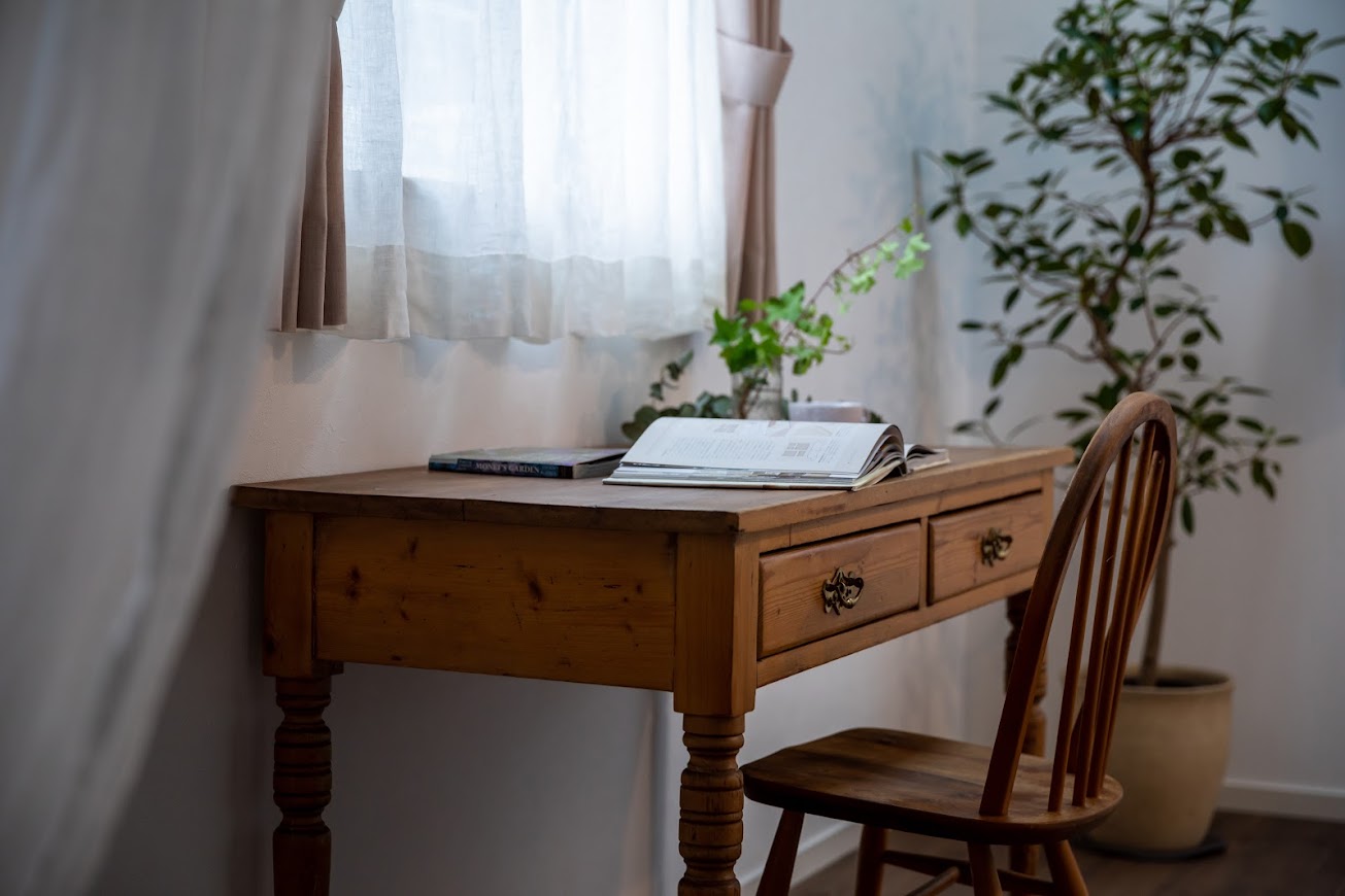 そして北向きの窓からの程よく優しい光&リネンのカーテン。