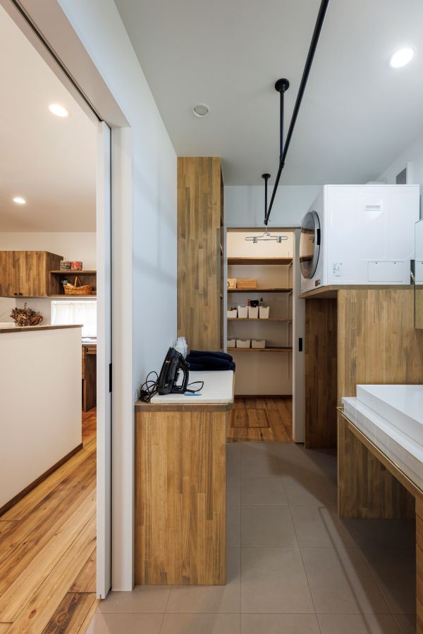 例えば、キッチンからパントリー、そしてランドリールームへと繋がる回遊動線。