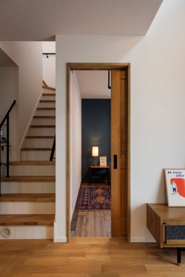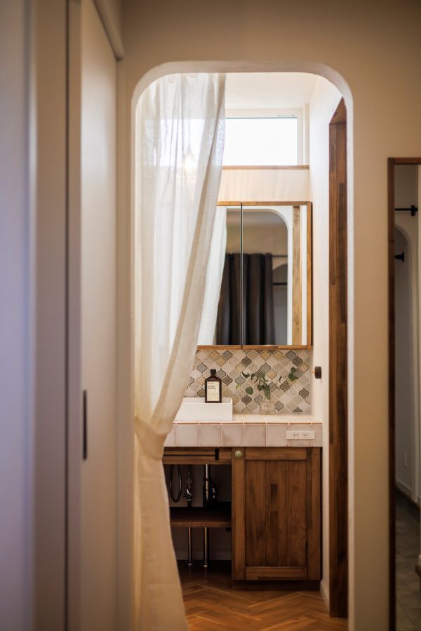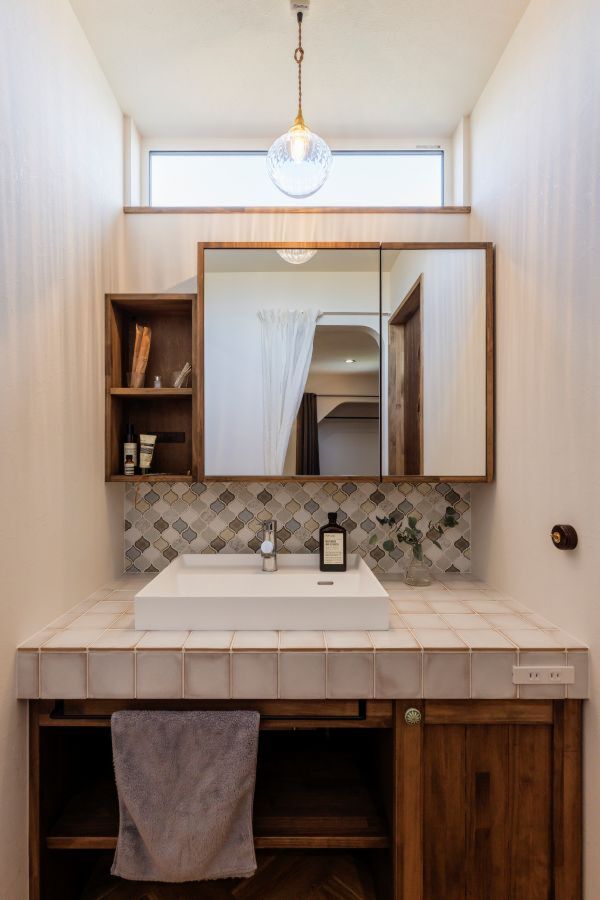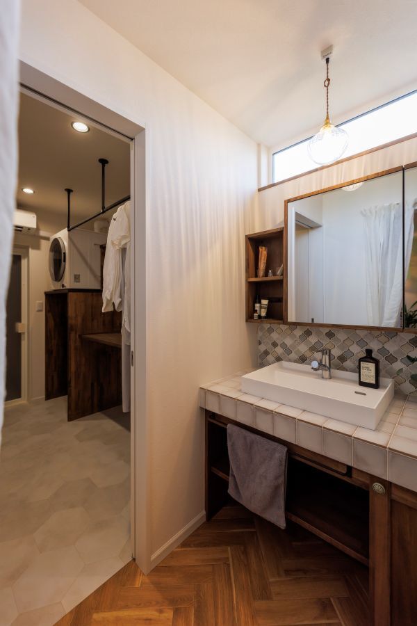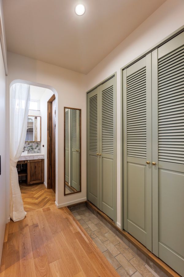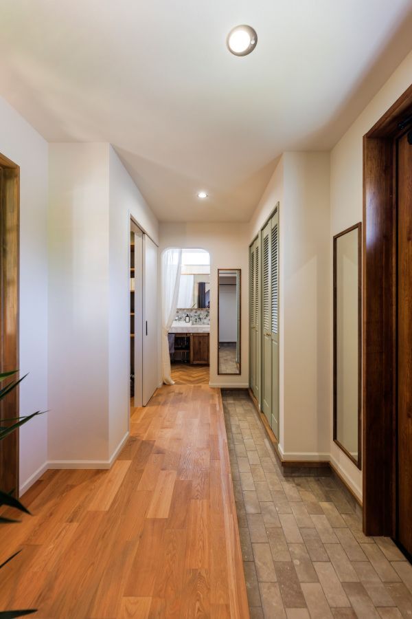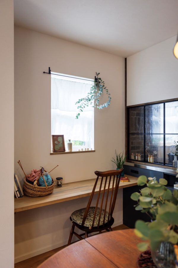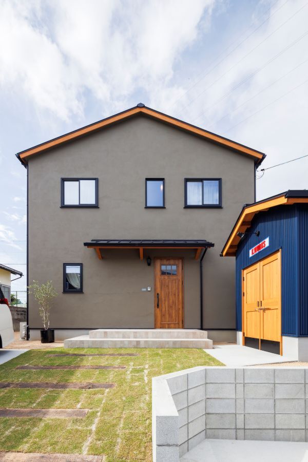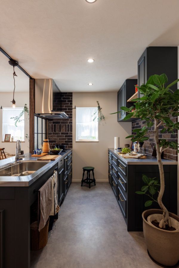 ホーム フォトギャラリー テイスト別 全て BROOK GREY (ブルック グレイ)のキッチンがある回遊動線の家 BROOK GREY (ブルック グレイ)のキッチンがある回遊動線の家 岡山県倉敷市 テイスト別|全て 外壁はグレーの塗り壁仕上げ、アクセントに木部をマホガニー色で着色、広い敷地の一角には倉庫も合わせて建築しました。画像のみを表示全 28 枚中 1 枚目を表示Next ≫ 倉庫は外壁をネイビーのガルバリウム、観音開きの扉はデザインを一から起こしたオリジナルドア。キックプレートなど装飾もいい感じです。画像のみを表示全 28 枚中 2 枚目を表示≪ Prev|Next ≫ 玄関ドアを開けると、あちこちにアクセスできる設計にしました。 向かって左は土間収納。コートなどアウター関係を掛けることができるハンガーパイプを設置しました。 正面のガラス入り木製ドアはリビングへ、右側の開口部はパントリーへつながっています。画像のみを表示全 28 枚中 3 枚目を表示≪ Prev|Next ≫ 靴は別の個所に収納を設けたので、土間収納はコンパクト設計です。画像のみを表示全 28 枚中 4 枚目を表示≪ Prev|Next ≫ 家族5人が一度に靴を履いたり脱いだりできるよう、玄関は横長につくりました。 そして、玄関から洗面へも直接いけるよう設計しています。画像のみを表示全 28 枚中 5 枚目を表示≪ Prev|Next ≫ セージカラーに着色したのは、玄関に設けた靴収納。 家族5人分の靴を収めます。画像のみを表示全 28 枚中 6 枚目を表示≪ Prev|Next ≫ 玄関~キッチンの間に設けたウォークスルーパントリー。 通路挟んで両サイドにしっかり収納することができます。画像のみを表示全 28 枚中 7 枚目を表示≪ Prev|Next ≫ パントリーの一角には冷凍庫置き場も確保しています。画像のみを表示全 28 枚中 8 枚目を表示≪ Prev|Next ≫ キッチンはKさん仕様の完全オリジナル・オーダーメイド。 濃いブルーでキッチン本体を着色し、周囲にはニュアンスのあるレンガを張り上げました。 天板はステンレスを採用しています。画像のみを表示全 28 枚中 9 枚目を表示≪ Prev|Next ≫ 玄関~洗面スペースへつながる下がり壁は角を少し落として柔らかな雰囲気に仕上げました。画像のみを表示全 28 枚中 10 枚目を表示≪ Prev|Next ≫ 木と2種のタイルを用いて造作した洗面台。 北向きながら上部に設けた横長窓の効果で明るく清潔感のある空間に仕上がりました。 照明やスイッチなど細かなところも抜かりなくセレクトしています。画像のみを表示全 28 枚中 11 枚目を表示≪ Prev|Next ≫ タイル柄の壁紙が印象的な一階お手洗い。 奥様のセンスが活かされた空間です。画像のみを表示全 28 枚中 12 枚目を表示≪ Prev|Next ≫ 洗面から続くのはランドリースペース。 リビングを通ることなく行ける動線がいいですよね!画像のみを表示全 28 枚中 13 枚目を表示≪ Prev|Next ≫ Kさん家のランドリールームは室内干しだけでなく、棚下に衣装ケースを置いてクローゼットとしての役割も果たします。画像のみを表示全 28 枚中 14 枚目を表示≪ Prev|Next ≫ 造作棚・カウンターは洗濯物を畳むだけでなく、アイロン台としての役割もこなしてくれます。画像のみを表示全 28 枚中 15 枚目を表示≪ Prev|Next ≫ ダイニングには存在感のあるイギリスマッキントッシュ社製の丸テーブルをセレクト。 このヴィンテージのテーブルは開閉する優れもの。 座る人数に合わせて広げることができるようになっています。画像のみを表示全 28 枚中 16 枚目を表示≪ Prev|Next ≫ キッチンコンロ前には型板ガラス入りのアイアンフレームをはめ込みました。 デザイン性もよく手元も明るくなるので、BROOKでは人気のある仕様です。画像のみを表示全 28 枚中 17 枚目を表示≪ Prev|Next ≫ キッチン背面の収納も造作しました。 吊りと棚は背の高い奥様に合わせて、天井部分まで収納できるよう設計しています。画像のみを表示全 28 枚中 18 枚目を表示≪ Prev|Next ≫ ダイニング横に設けたカウンター。 奥様が編み物をしたり、お子さま達がもう少し大きくなったら本を読んだり、宿題したり、いろんな用途で活躍します。画像のみを表示全 28 枚中 19 枚目を表示≪ Prev|Next ≫ リビング上部は吹き抜けにして解放感を高めました。画像のみを表示全 28 枚中 20 枚目を表示≪ Prev|Next ≫ さらに2Fとの間仕切りをアイアンの手すりにすることで、より広がりを感じることができるようにしています。画像のみを表示全 28 枚中 21 枚目を表示≪ Prev|Next ≫ 吹抜上部に設けた窓から柔らかな光が注ぎこみます。画像のみを表示全 28 枚中 22 枚目を表示≪ Prev|Next ≫ 間取りを考えるうえで近年ご要望の多い1F寝室。 Kさんのお家も寝室は1Fに設けました。画像のみを表示全 28 枚中 23 枚目を表示≪ Prev|Next ≫ 寝室は1面だけアクセンントクロスを採用しました。 さらに上質なカーテンやヴィンテージのラグなど用いることで雰囲気の良い寝室に仕上がっています。画像のみを表示全 28 枚中 24 枚目を表示≪ Prev|Next ≫ 階段は蹴込(階段の踏み板と踏み板の間にある垂直部