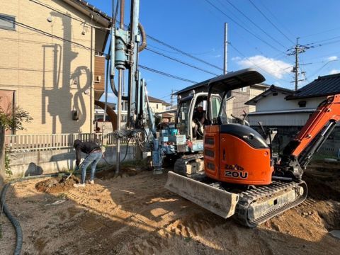 10/26の上棟に向けて大工さんによる土台引き作業が行われました。