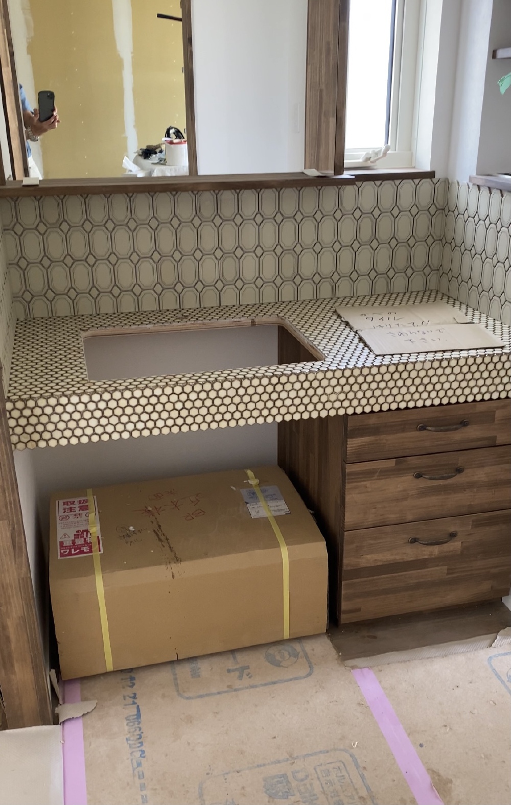 タイル工事進んでます。