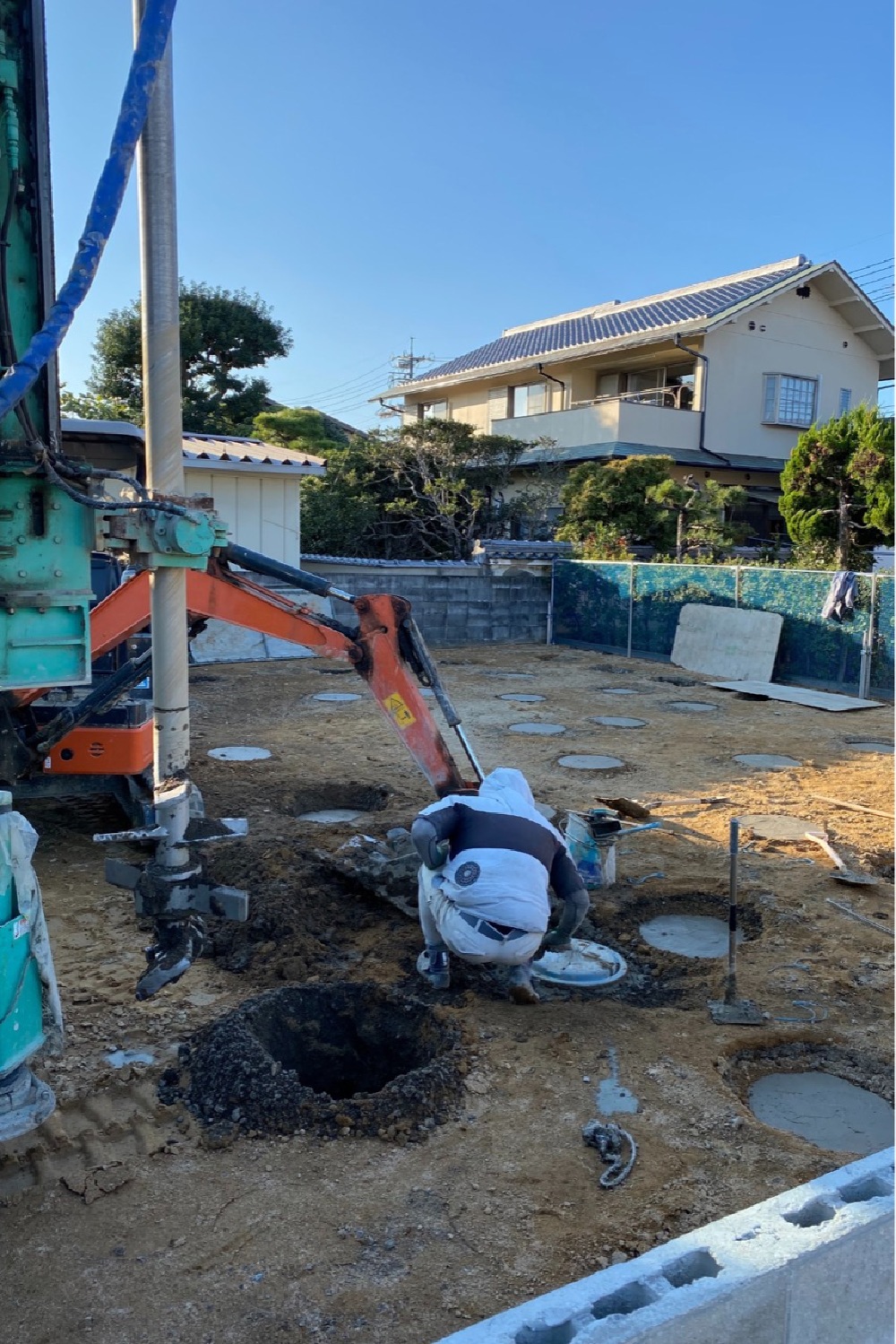 地盤の固さの判定で補強が必要という結果がでましたので、その内容に基づいて作業を行っています。
