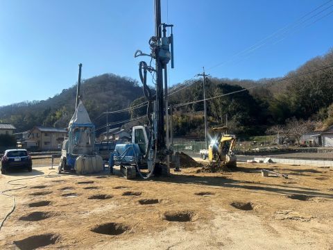 地盤の調査の結果、補強工事が必要との判定がでたため、まずはその工事からはじめます。