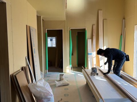大工さんの工事が終わり、現在は内部の塗装工事を行っています。