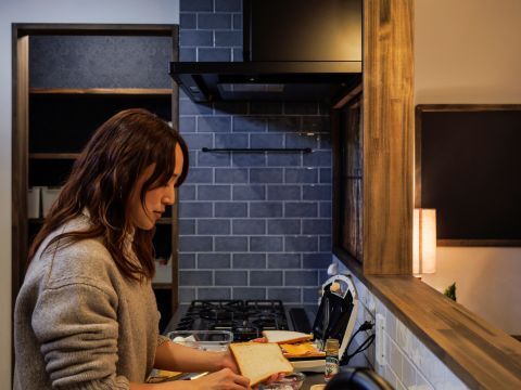 造作キッチンのタイル工事