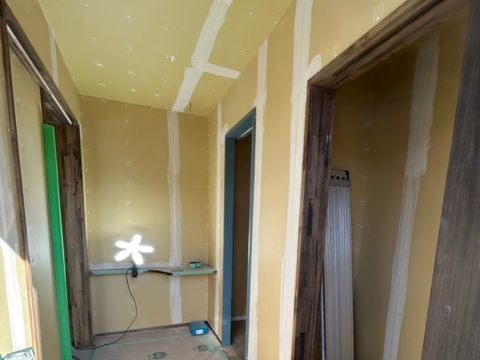 壁・天井の石膏ボードの継ぎ目にパテ処理を行いました。